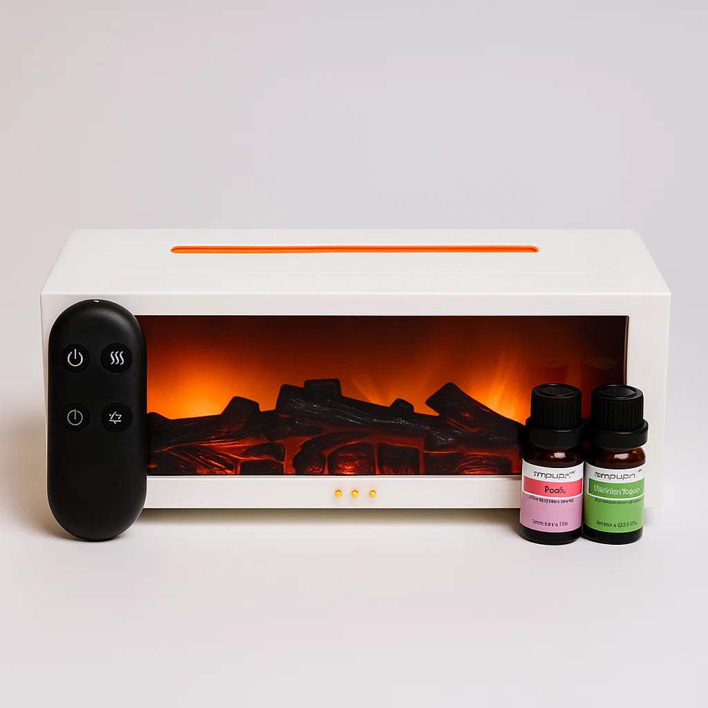 המפיץ מדמה אח בוערת עם אדים נעימים ואור מרצד, ויחד עם שמני הריח – הוא ממלא את החלל באווירה עוטפת ומרגיעה.